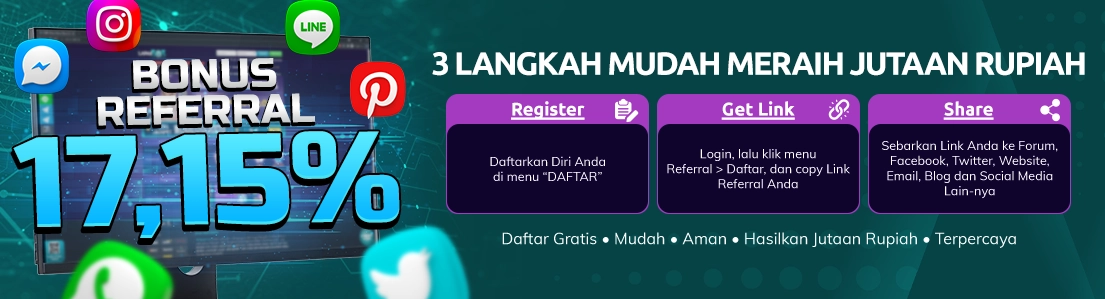 Referral system tidak dipungut biaya apapun. Hanya dengan modal online saja setelah itu Anda hanya tinggal mengecek keuntungan Anda yang dapat dilihat secara online kapanpun dan dimanapun. Register sekarang juga dan referensikan Link Referral Anda